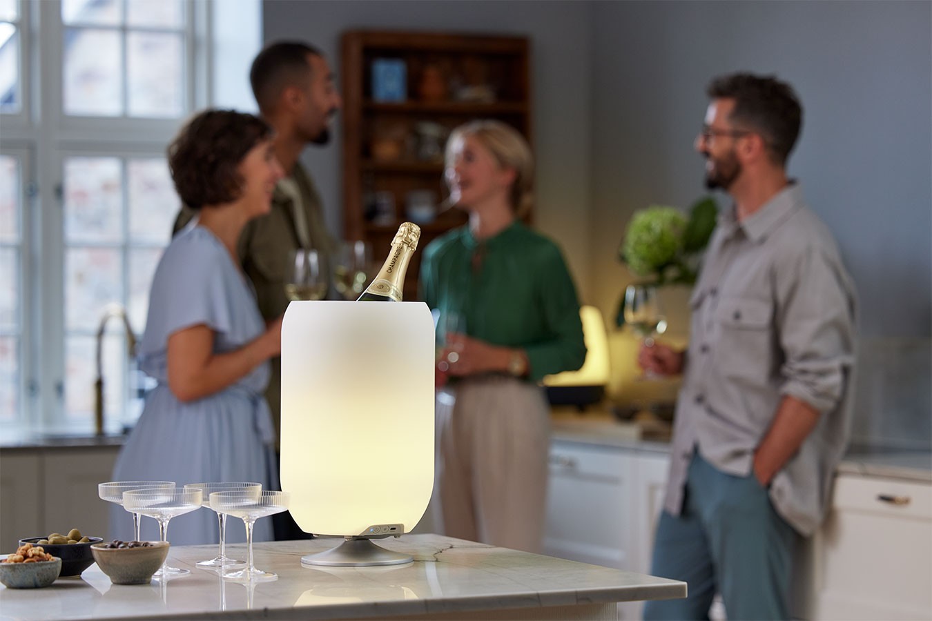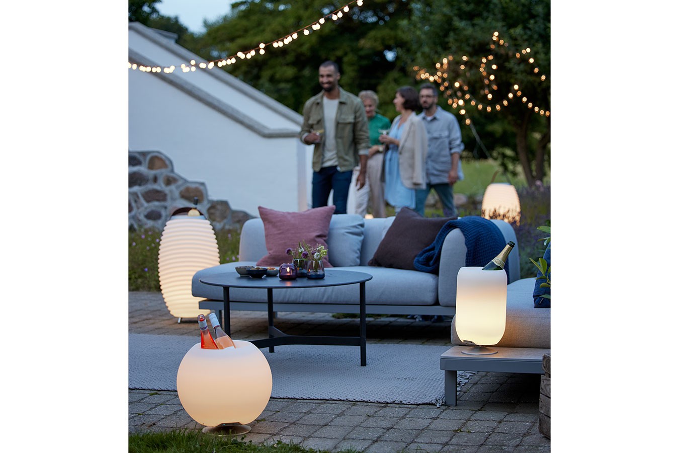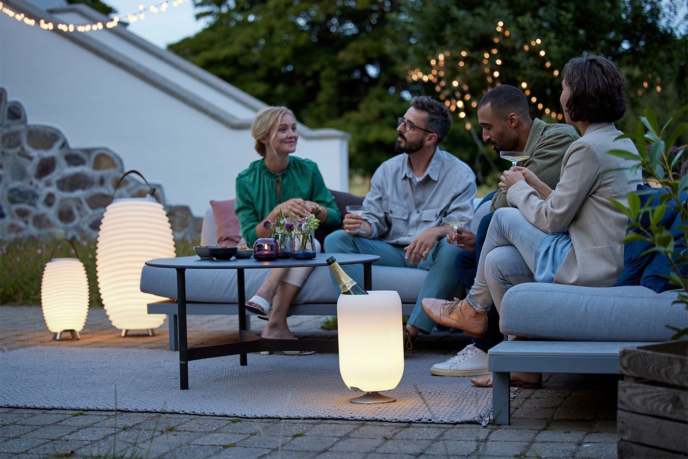 Musikbox, Tischleuchte, Weinkühler, In- und Outdoor, mit Akkukabel, wiederaufladbar, LED