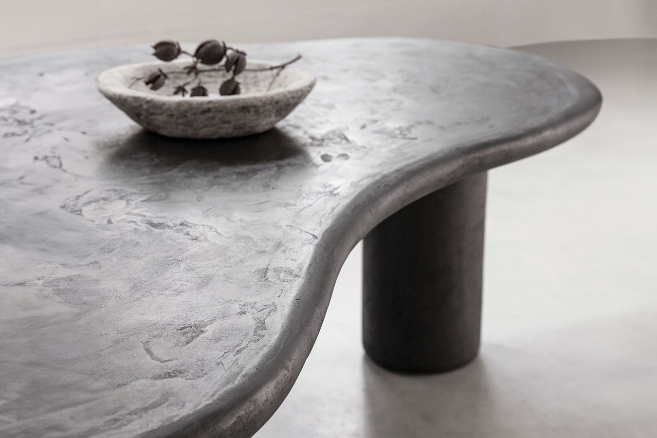 Dieser bemerkenswerte Tisch vereint meisterhaftes Design mit erstklassiger Handwerkskunst und wird zum Mittelpunkt in jedem Wohnzimmer. Seine Platte wurde mit geschwungenen Linien gestaltet, was ihr eine unverwechselbare Ästhetik verleiht. Diese sanfte Kurvatur erzeugt eine dynamische Silhouette und verleiht dem Tisch eine anmutige Leichtigkeit, die jeden Raum bereichert. Die graue Farbgebung des Mortex unterstreicht seine moderne, dennoch zeitlose Ausstrahlung, die sich nahtlos in jede Wohnraumgestaltung einfügt. Die Platte wird von drei robusten, runden Säulenfüßen getragen, die dem Tisch nicht nur Stabilität, sondern auch Charakter verleihen. Diese kräftigen Füße bilden eine solide Basis und setzen einen markanten Akzent, der das Design des Tisches vollendet. Dieser Couchtisch bietet nicht nur genug Platz für Zeitschriften, Fernbedienungen und Dekorationsobjekte, sondern ist auch ein Ausdruck individuellen Stils und Geschmacks. Ob als zentraler Anziehungspunkt Ihres Wohnzimmers oder als stilvolle Ergänzung zu Ihrer Couch - dieser Tisch vereint Funktionalität und Ästhetik auf höchstem Niveau. Mit unserem Couchtisch aus grauem Mortex und seiner geschwungenen Platte auf drei robusten Säulenfüßen bringen Sie zeitlose Eleganz und modernes Design in Ihr Zuhause und schaffen einen Wohnbereich, der zum Verweilen und Entspannen einlädt.