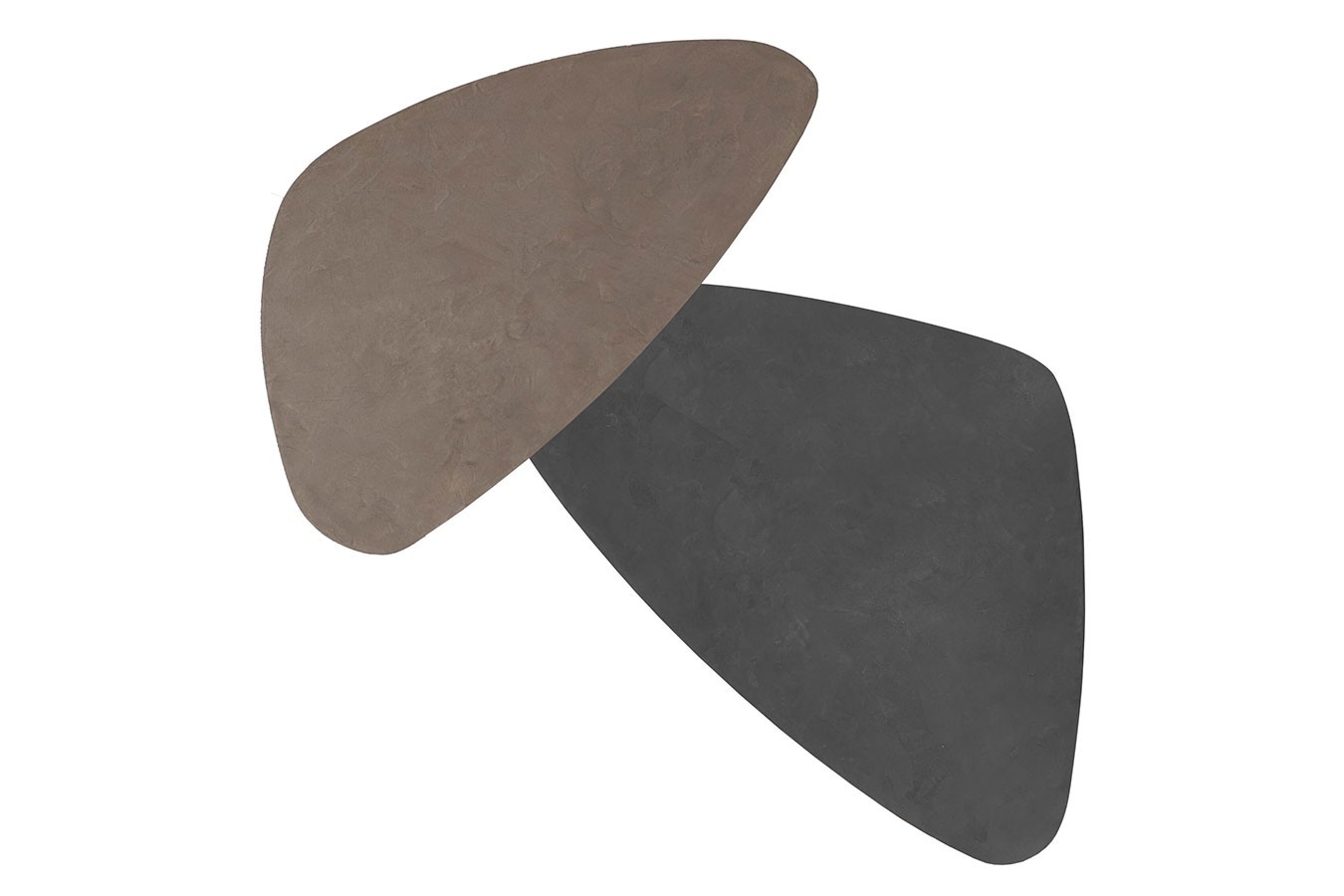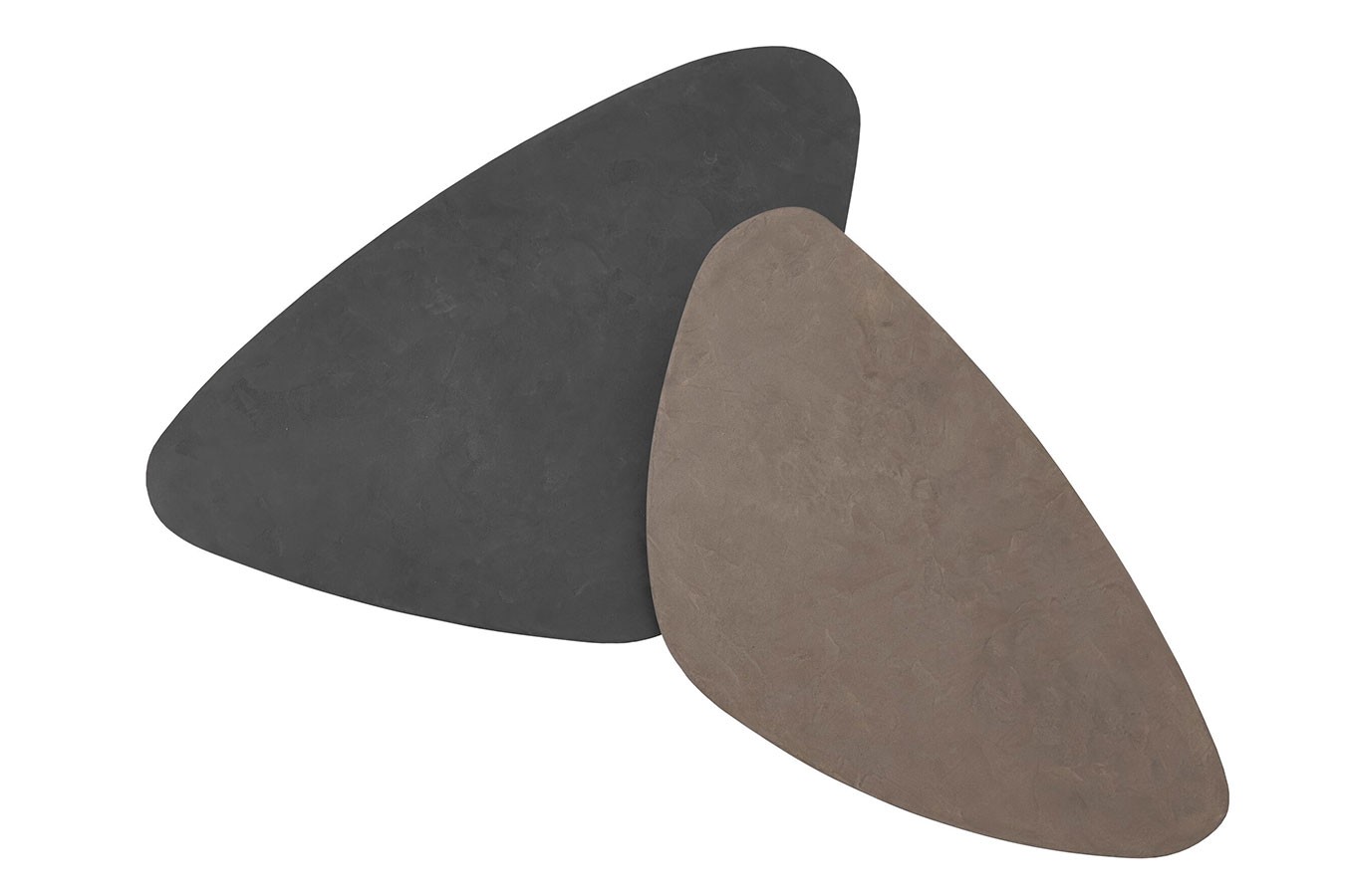 Dieses Set besticht durch seine unkonventionelle Formgebung und hochwertige Materialwahl und wird zum Highlight in jedem Wohnbereich.Jeder Tisch des Sets präsentiert eine einzigartige dreieckige Oberfläche aus Mortex, die in verschiedenen Schwarznuancen gehalten ist. Diese raffinierte Farbgebung verleiht den Tischen eine ansprechende Tiefe und einen Hauch von Mystik, während die filigrane Struktur des Mortex eine luxuriöse Haptik und ein modernes Erscheinungsbild bietet.
