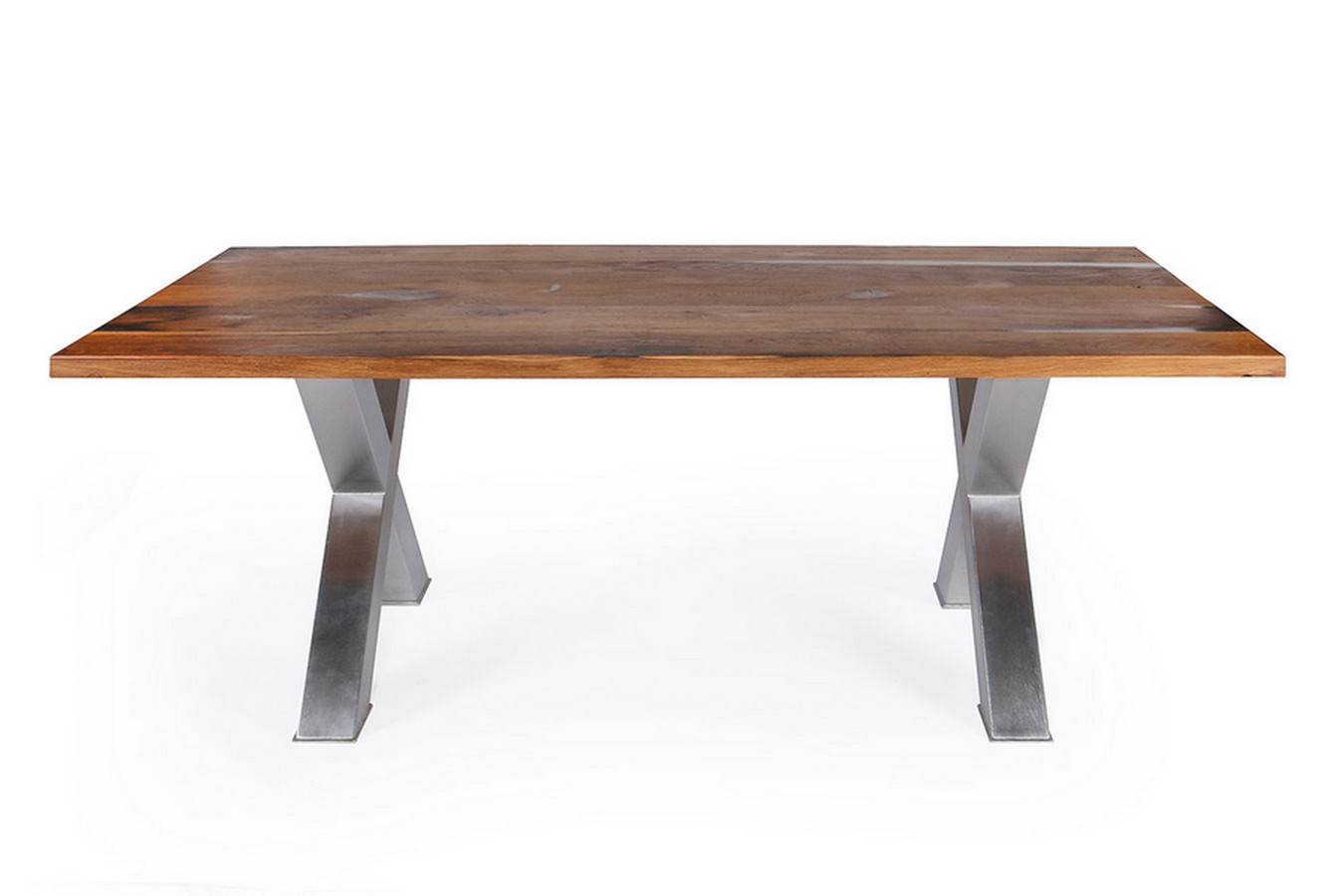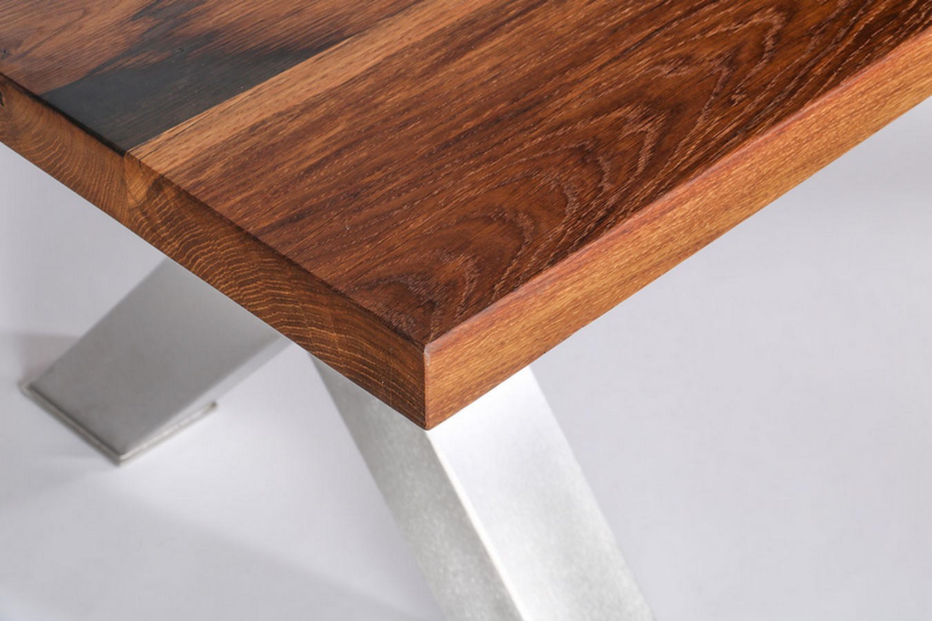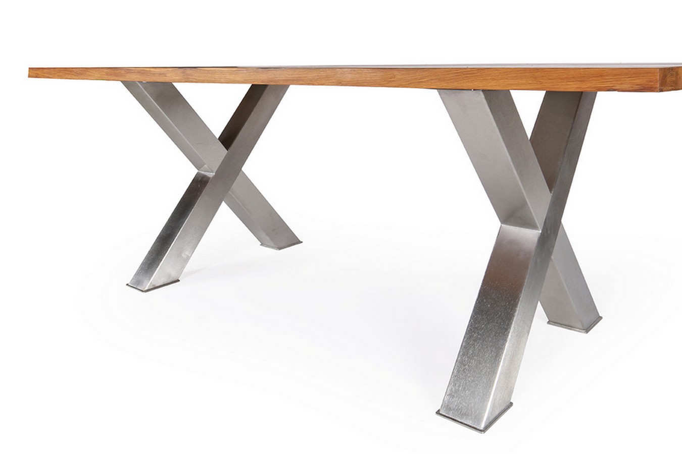 Oberfläche natur geölt und gewachst, Gestell Tischbein X 2er Set, matt gebürstet