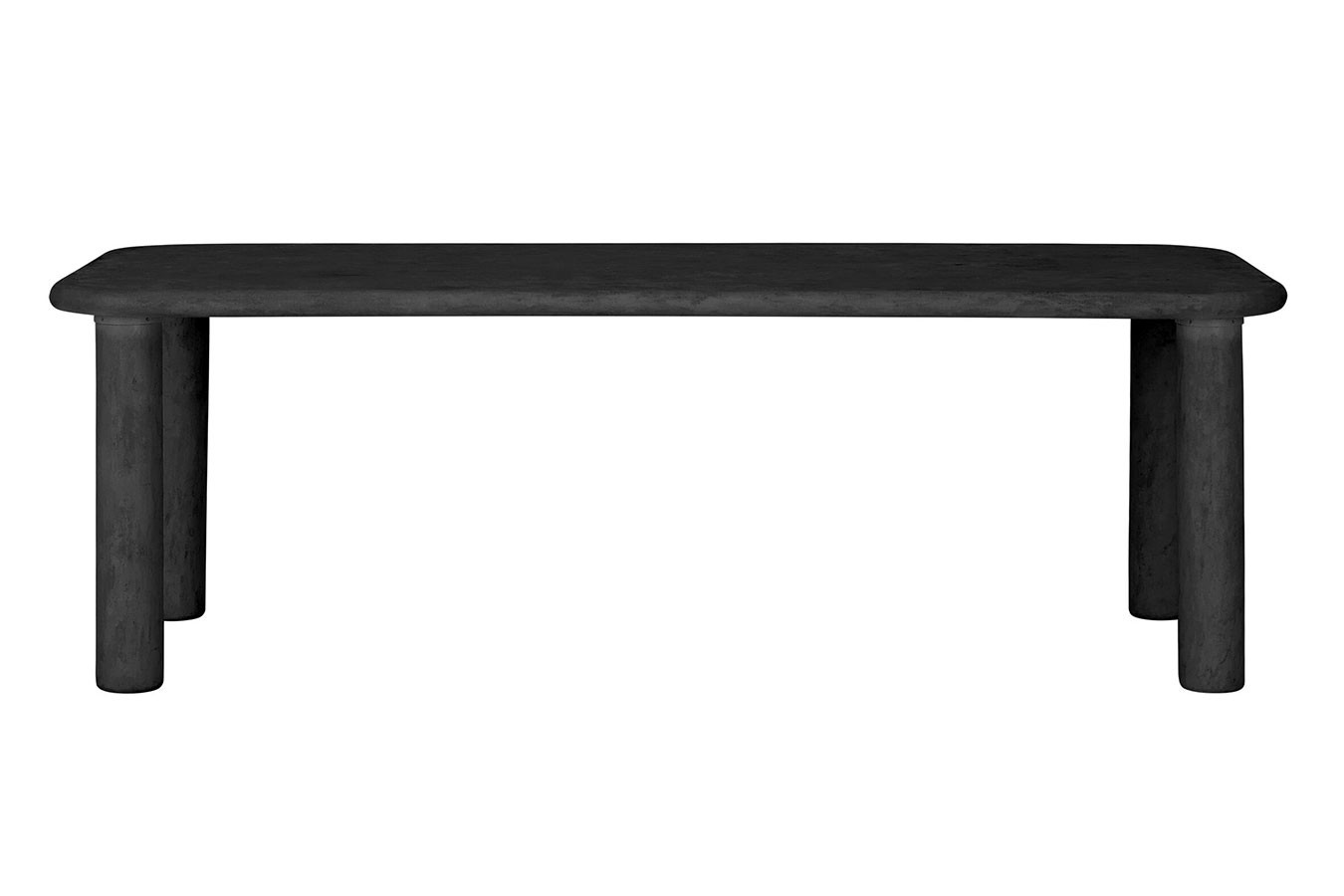 Getragen wird die elegante Platte von vier runden, säulenförmigen Füßen, die ebenfalls aus Mortex gefertigt sind. Diese filigranen Füße setzen einen markanten Akzent und verleihen dem Tisch Stabilität und Charakter. Die klare Linienführung und die schlichte Formgebung der Füße unterstreichen das moderne Design des Tisches und machen ihn zu einem echten Blickfang in Ihrem Esszimmer. Bringen Sie mit unserem Esstisch aus Mortex in Schwarz, abgerundeten Kanten und runden, säulenförmigen Füßen zeitlose Eleganz und modernes Design in Ihren Essbereich und verwandeln Sie jeden Mahlzeit in ein besonderes Erlebnis.