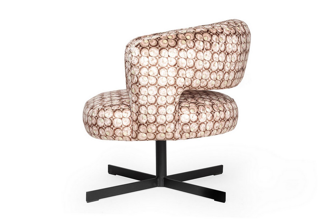 Erleben Sie den neuesten Wohntrend: Low Dining – entspanntes Speisen auf niedriger Sitzhöhe. Dieser stilvolle, drehbare Loungesessel verbindet Komfort mit Retro-Charme. Sein edler Samtbezug im trendigen Retromuster in Rosa-, Braun- und Mocchatönen setzt stilvolle Akzente. Perfekt für moderne Low-Dining-Arrangements, aber auch als eleganter Solist in Ihrer Lounge oder Leseecke ein echtes Highlight.