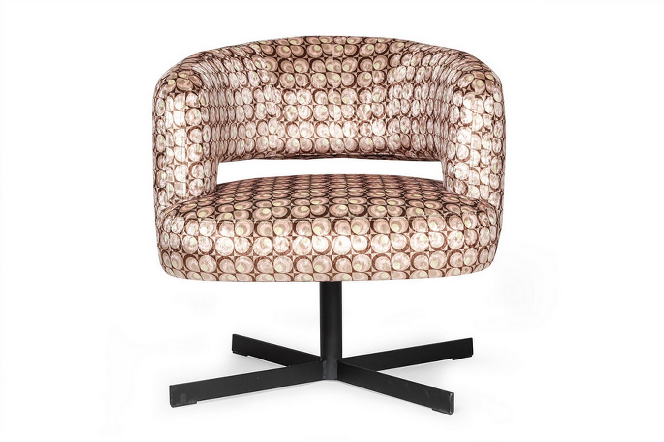 Drehsessel, Bezug Retro Stoff braun, rosa gemustert, Gestell Metall schwarz
