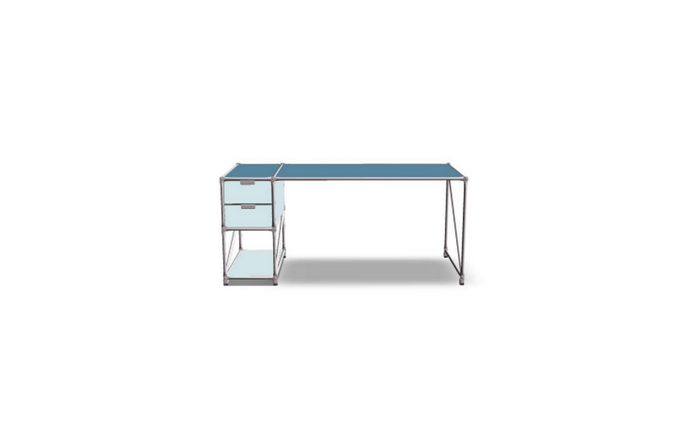 Arbeitstisch, MDFplatten blau, Edelstahlgestell, Kundenkonfiguration möglich