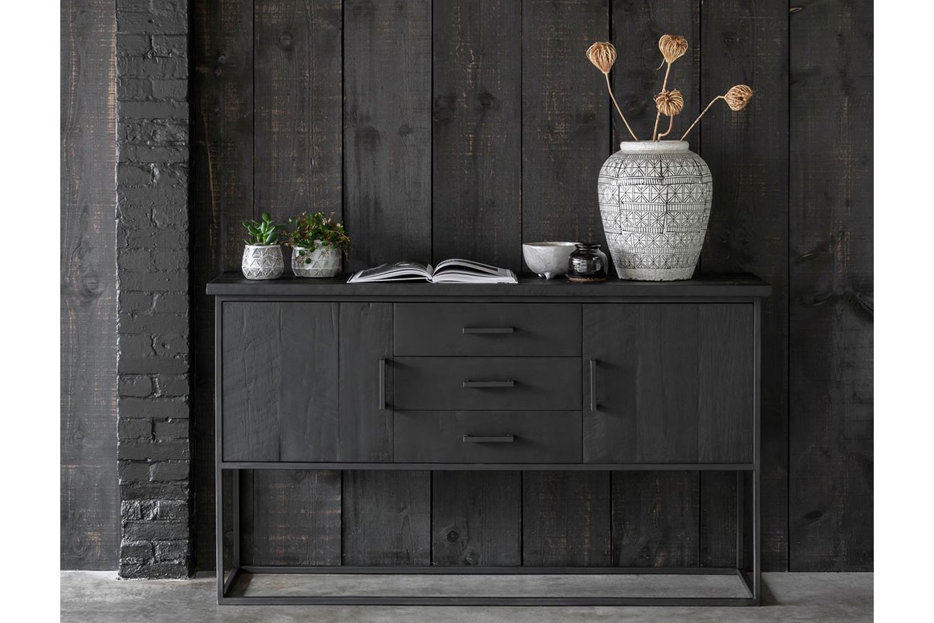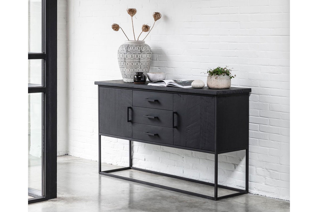Die schwarzen Metallfüße des Sideboards sind nicht nur ein stilvolles Element, sondern auch äußerst stabil und belastbar. Sie verleihen dem Möbelstück einen modernen Touch.