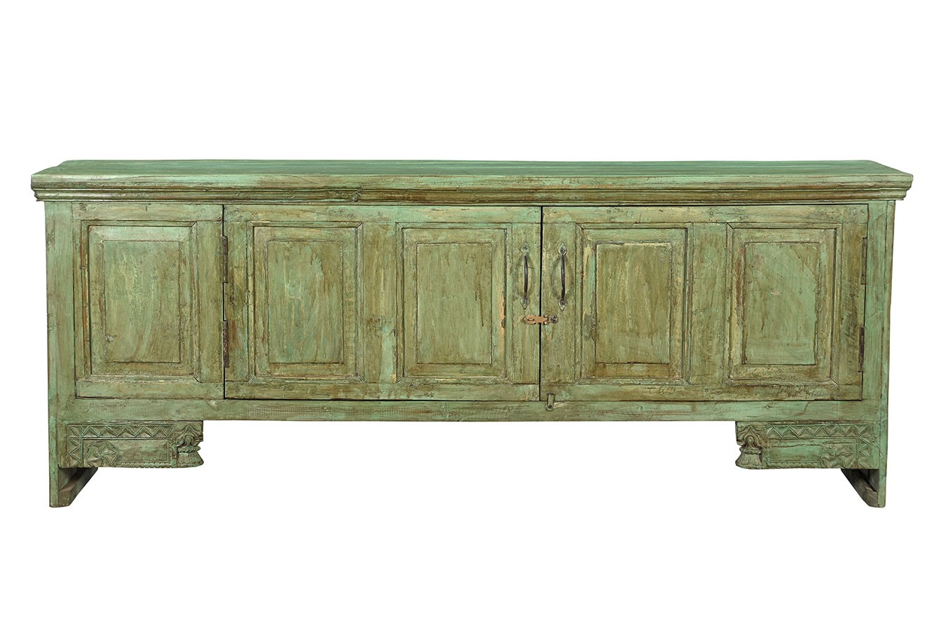 Kommode, 100% recyceltes Massivholz, 2-türig, grün, bunte Restpatina