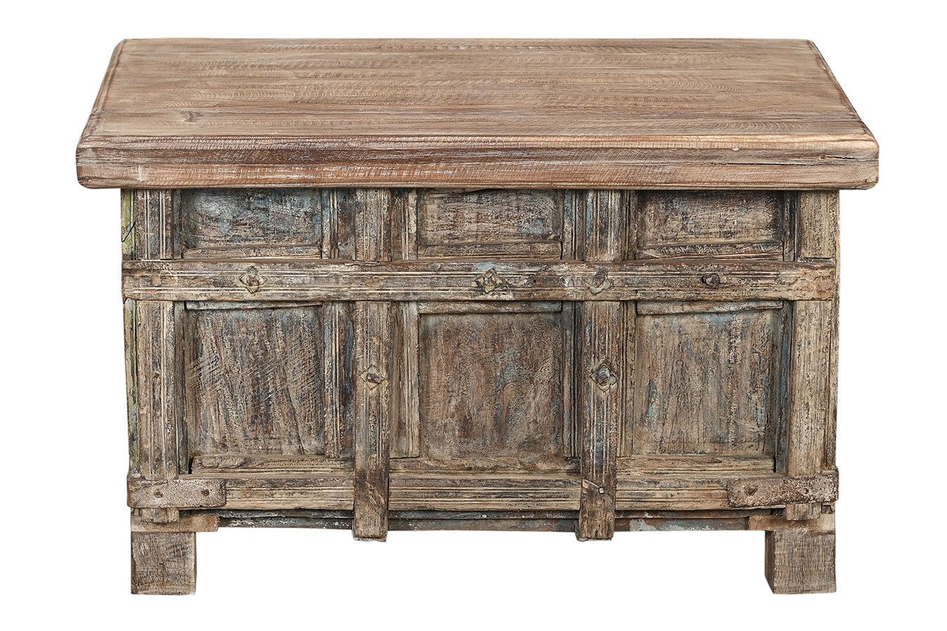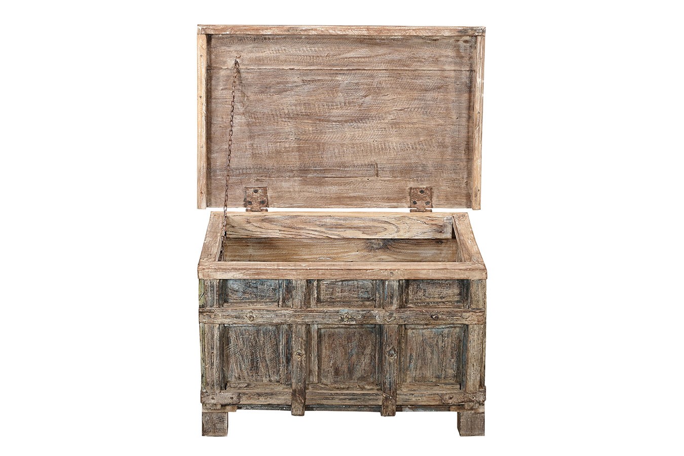 Aufbewahrungskiste, Einzelstück, 100% recyceltes Massivholz, whitewashed, bunte Restpatina