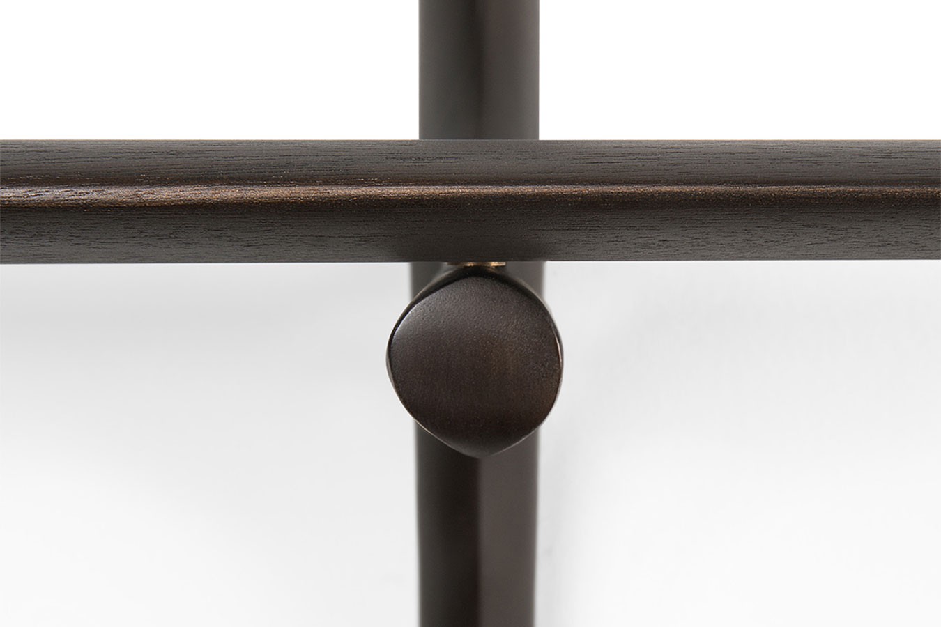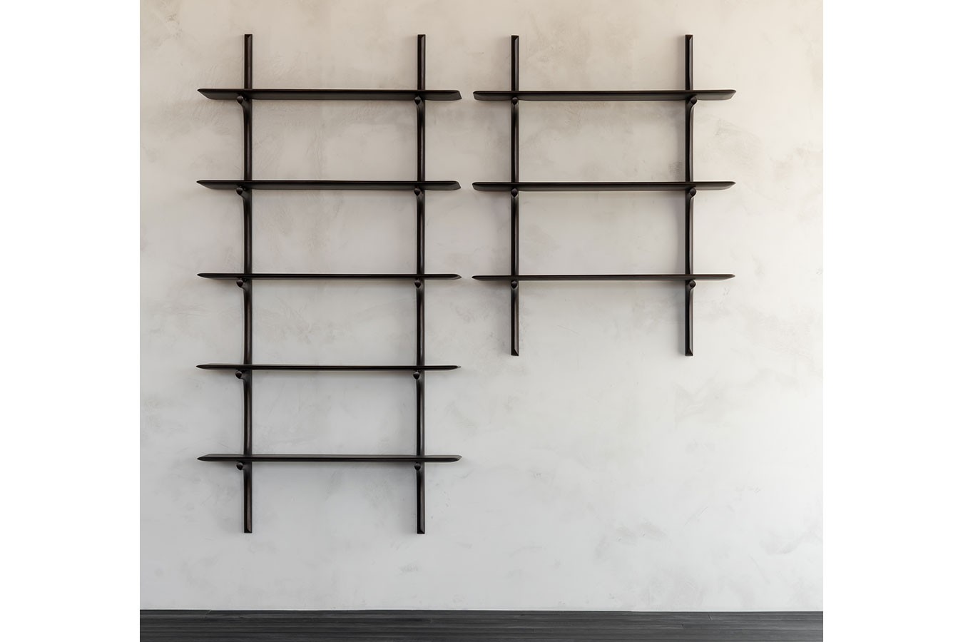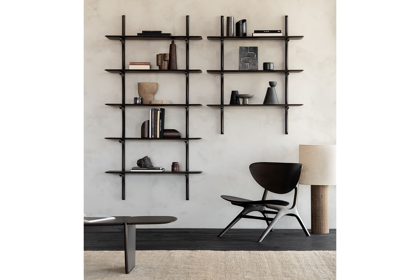 Die PI-Kollektion ehrt das Design der Natur, indem sie ihre organischen Formen und Linien bewahrt. Das Wandregal aus dunkelbraun gefärbtem Mahagoni-Holz präsentiert sich mit zwei übereinander angeordneten Böden, die sanft geschwungen aus der Wandhalterung herauswachsen. Jedes Exemplar wird von Hand veredelt – so entsteht ein einzigartiges Finish, das die natürliche Struktur des Holzes sichtbar macht. Das Regal kombiniert skandinavische Leichtigkeit mit skulpturaler Präsenz und bietet eine stilvolle Bühne für Bücher, Objekte oder Erinnerungsstücke.