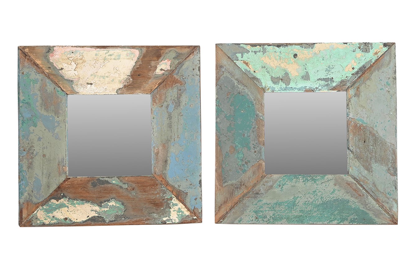 Spiegel mit Rahmen, 100% recyceltes Massivholz, bunte Restpatina, Unikat